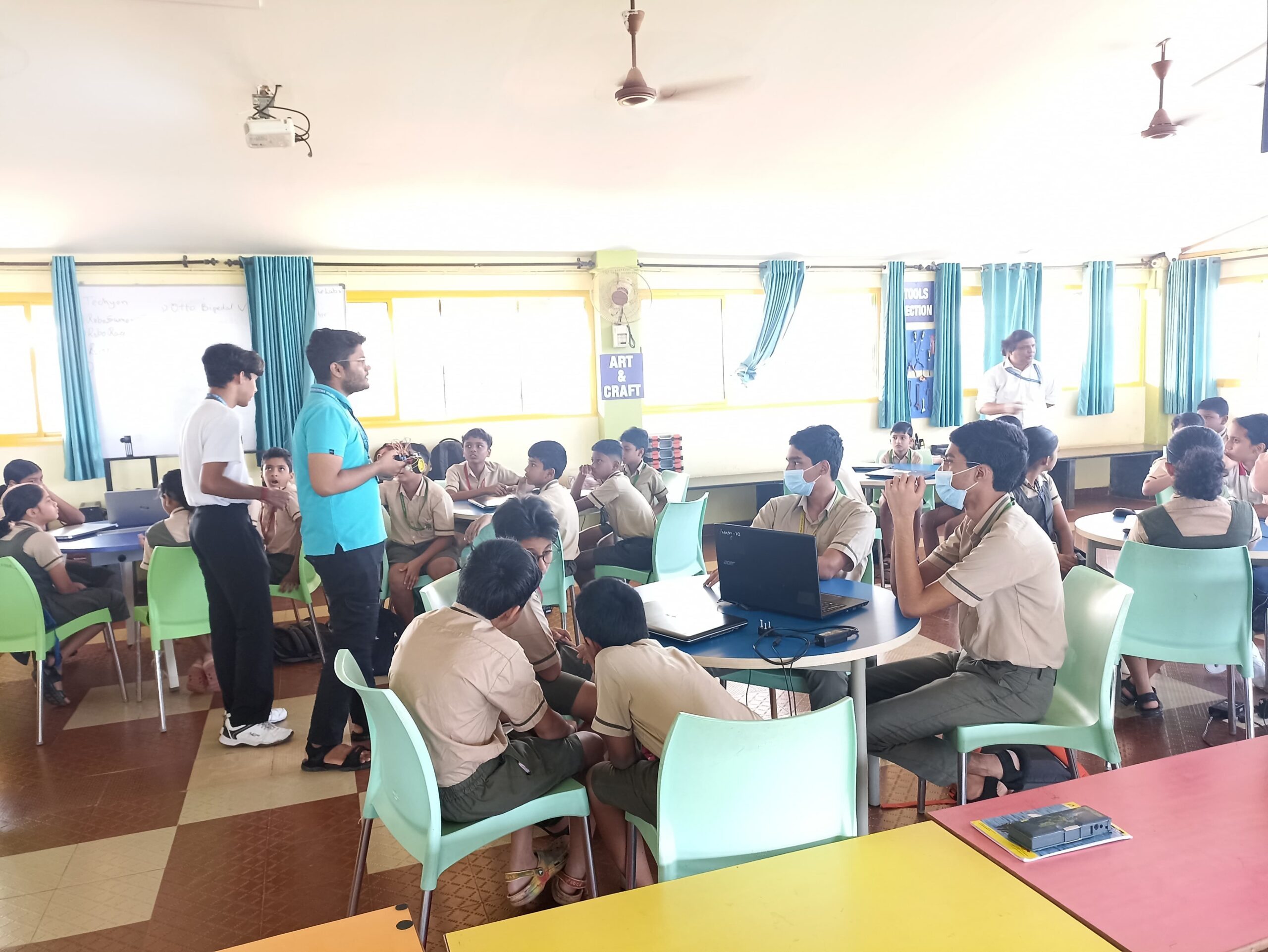 Participants also had the opportunity to engage in the practical assembly and testing of their own line follower bots in small teams. The interactive nature of the workshop encouraged curiosity, collaboration, and creativity among the school students.