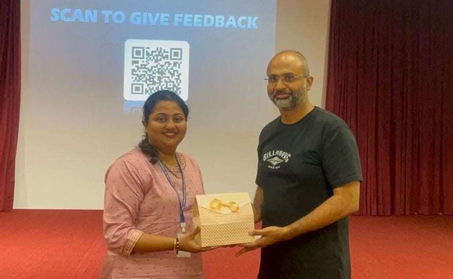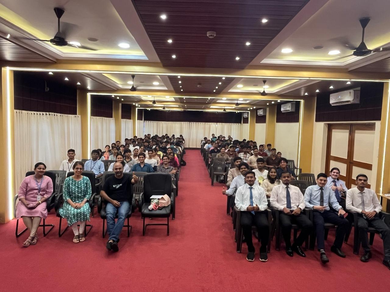 In his address, Mr. Sridhar shared his personal journey, narrating the challenges and milestones that shaped his career and leadership. He spoke on the evolving role of Artificial Intelligence in today’s job market, emphasizing the need for adaptability and preparedness to face future challenges. He also highlighted the growing relevance of startups, encouraging students to build versatile skill sets and continuously strive for self-improvement during their college years. His talk was both motivational and thought-provoking, resonating strongly with the student audience.