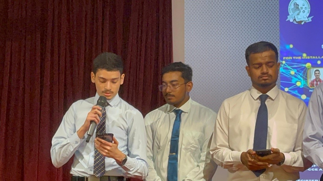 The formal installation of the council commenced under the guidance of Dr. Louella Colaco, Faculty Sponsor of the PCCE ACM Student Chapter. The newly elected office bearers were introduced and they solemnly took their oaths of office, officially assuming their responsibilities. The oath was taken by: Mr. Paulo Pereira (T.E. Comp) – Chair, Mr. Om Mayekar (S.E. Comp) – Vice-Chair, Mr. Joylen Fernandes (T.E. Comp) – Treasurer, Mr. Shane Remedios (T.E. Comp) – Secretary, Mr. Vedant Parab – Webmaster (S.E. Comp) and Ms. Disha Naik (S.E. Comp) – Membership Chair.