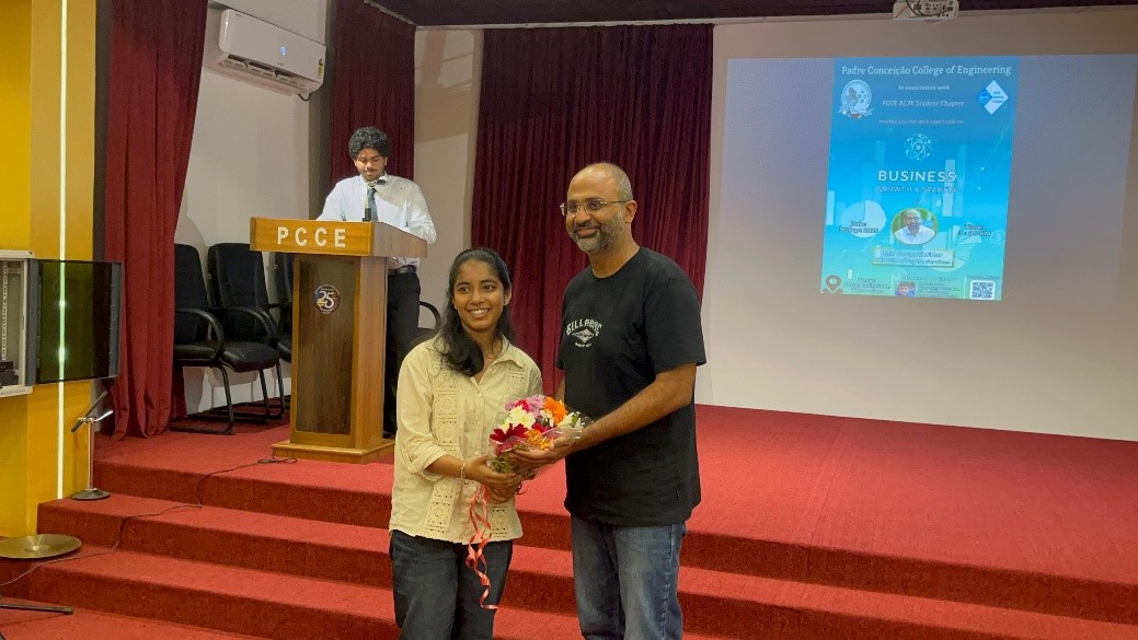 The ACM Student Chapter of Padre Conceicao College of Engineering (P.C.C.E.), organized its first event for the academic year 2025-26 on 9th September 2025 at 2:30 pm at the college auditorium. It featured the oath-taking ceremony of the chapter office bearers and an insightful talk on “Business Growth and Startups. The event was attended by ACM student chapter members, faculty, and students across departments. The total number of participants were 130. The student coordinator for the event was Mr. Om Mayekar (S.E. Computer Engineering) and the faculty coordinators for the event were Dr. Louella M. Colaco and Ms. Meghana Pai Kane. The ceremony was compared by Mr. Rizbern Prassanha, a student of T.E. Computer Engineering.