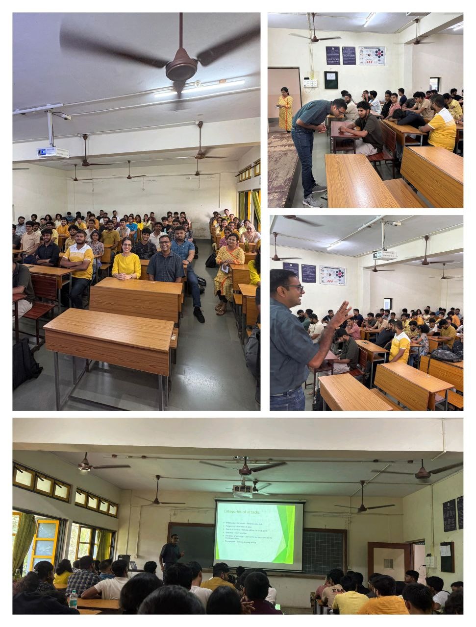 The session began with an illuminating introduction to AI and Cybersecurity, laying the groundwork for a comprehensive exploration of emerging technologies. He delved into the distinctions and applications within the domains, underscoring the pivotal role of AI and cybersecurity in modern technology landscapes. Key topics included Narrow AI, Prompt Engineering, LLM, Responsible AI Design and Governance, Categories of Attack, Secure Design Principles, Encryption, Incident Response, and Security Concepts. Each topic was explained with clarity, giving students a practical understanding of both AI innovations and cybersecurity essentials.