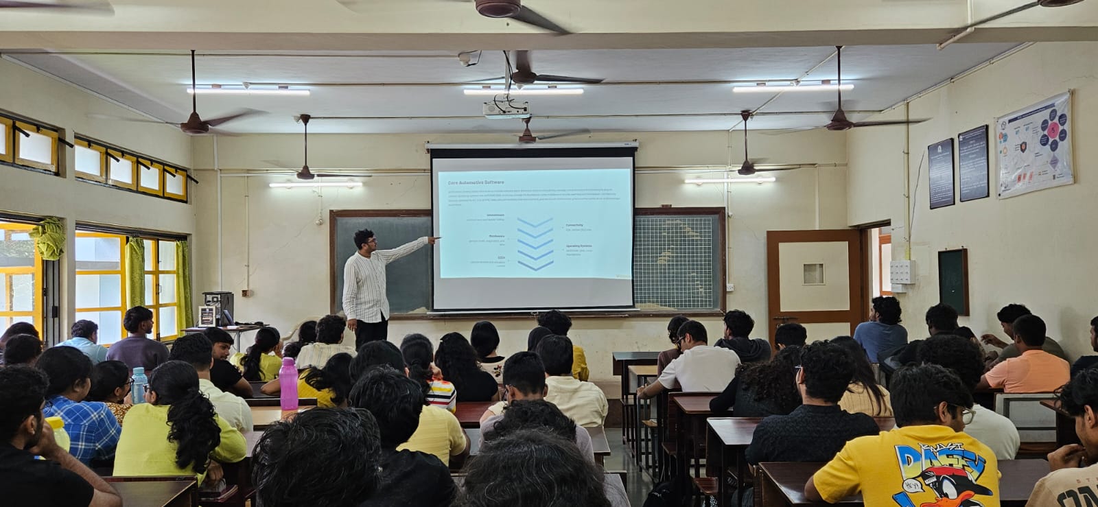 The session highlighted that the automotive world is becoming increasingly software-driven. From OTA updates to AI-based assistants and autonomous driving, software is central to innovation in mobility.This session was organized by Ms. Gauri Barve and Ms. Shruti Samant, class teachers of T.E A2.